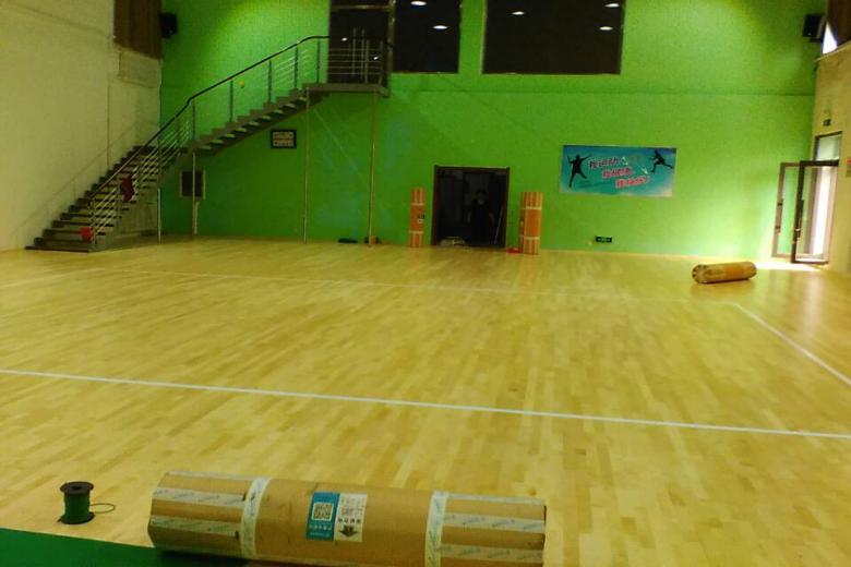 6.鋪設(shè)體育木地板:面板材質(zhì):均為A級B級優(yōu)質(zhì)材的柞木.楓木.